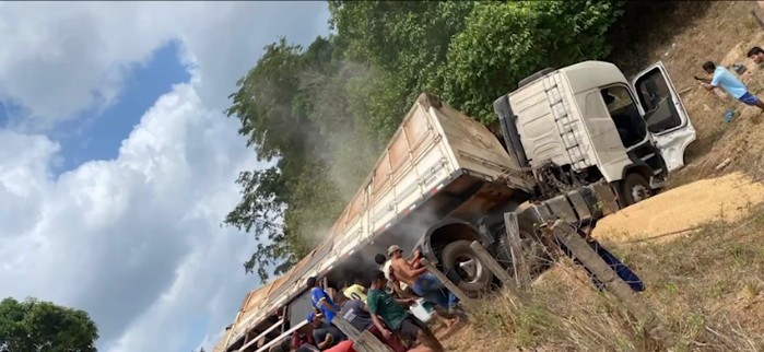 Carreta tomba e carga é saqueada na BR-222, no MA