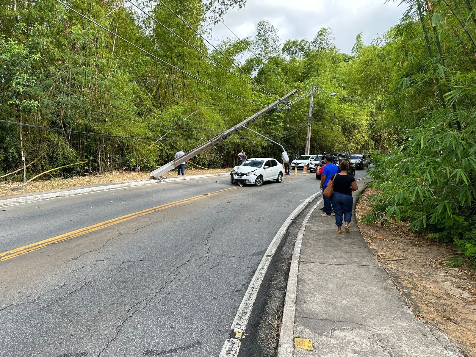 Um carro bateu e derrubou um poste na Avenida Hélio de Castro Vasconcelos, parte alta de Maceió, na manhã desta segunda-feira (13). Não houve feridos.