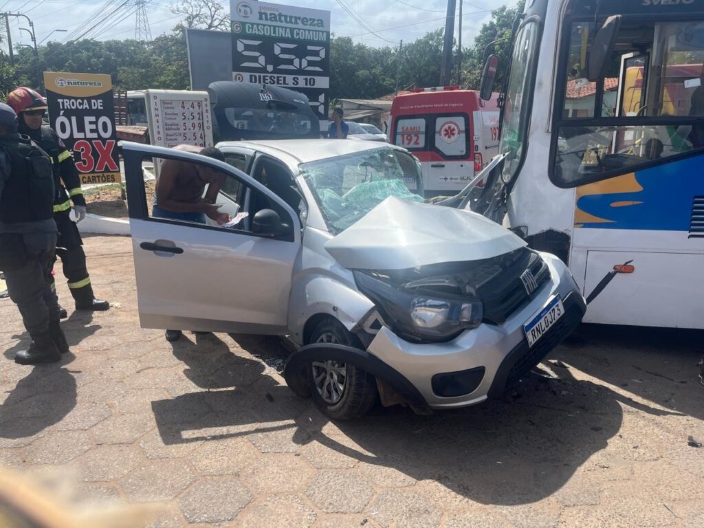 O veículo vinha do sentido São Luís indo para Ribamar, quando colidiu na lateral esquerda do coletivo. Com o impacto da colisão, a condutora do carro de passeio ficou presa às ferragens e foi retirada do local pelos bombeiros.