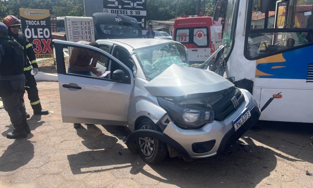 O veículo vinha do sentido São Luís indo para Ribamar, quando colidiu na lateral esquerda do coletivo. Com o impacto da colisão, a condutora do carro de passeio ficou presa às ferragens e foi retirada do local pelos bombeiros.