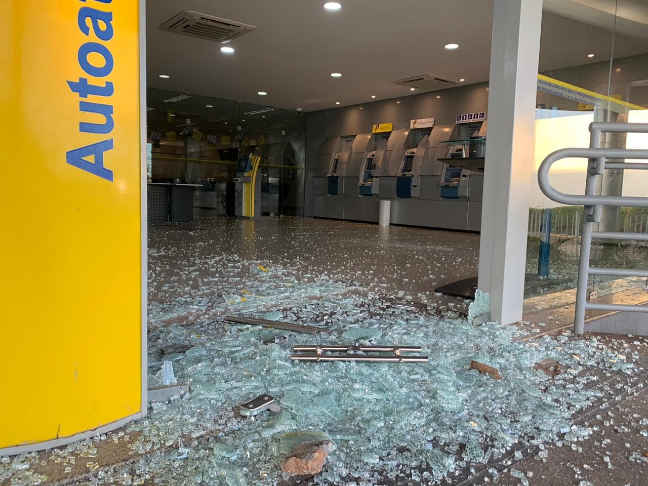 As portas de vidro da entrada do local ficaram praticamente todas quebradas, e o homem ainda chegou a tentar destruir alguns caixas eletrônicos.