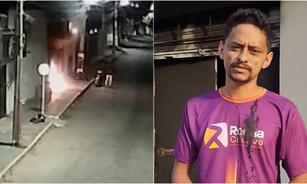 Vídeo mostra o momento em que um homem se aproxima e ateia fogo na loja Rocha Criativa, um mês após a inauguração. Polícia investiga o caso. Empresário Eduardo Rocha denuncia o incêndio criminoso que destruiu a loja 'Rocha Criativa', em Carolina