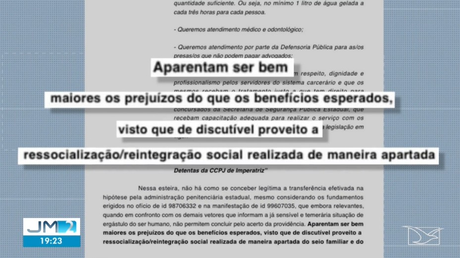 O descumprimento da decisão pode resultar em multa diária de até R$ 5 mil por cada presa mantida em situação de indevida transferência. À TV Mirante, a SEAP informou que foi notificada da decisão e irá se manifestar no prazo legal.
