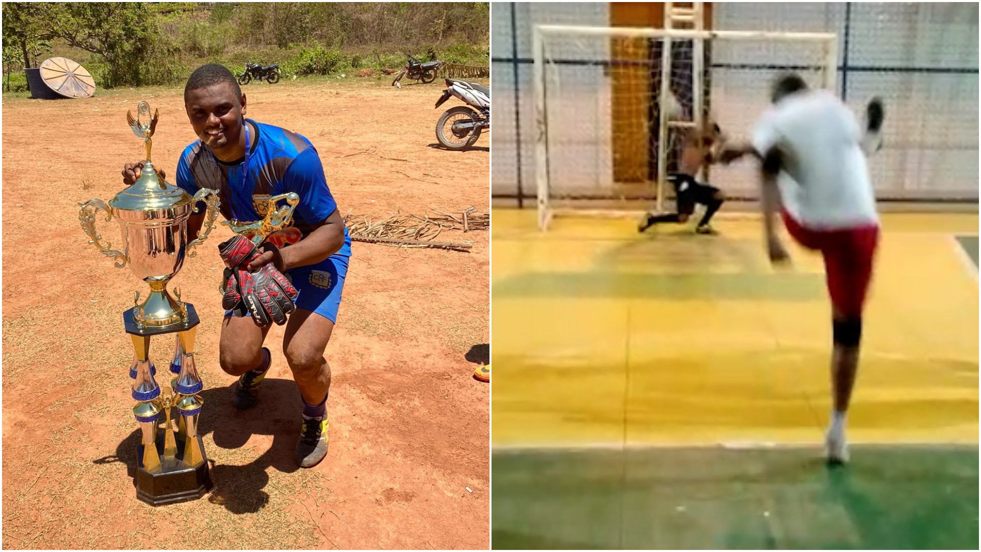 No vídeo (veja abaixo), quem aparece é o Marcos André, de 23 anos, morador da cidade de Bernardo do Mearim, a cerca de 291 km de São Luís. Com a perna esquerda, ele chuta a bola com tanta força que parece um 'tiro'. O goleiro não teve chances de defesa.