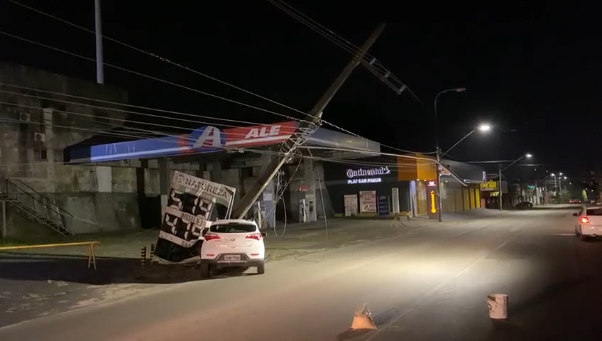 De acordo com informações de testemunhas, o condutor do carro de passeio teve apenas ferimentos leves. Por conta do acidente, o poste ficou pendurado na fiação elétrica.