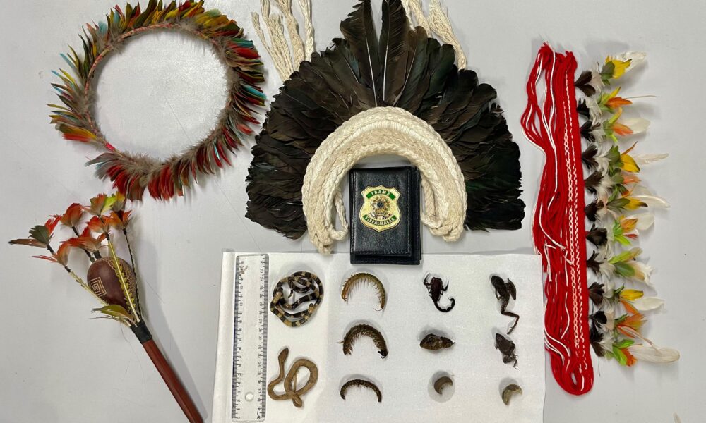 A ação "Hermes" da Polícia Federal, Instituto Brasileiro do Meio Ambiente (Ibama) e a Receita Federal apreendeu também cocares e um chocalho, feitos com penas de aves silvestres.