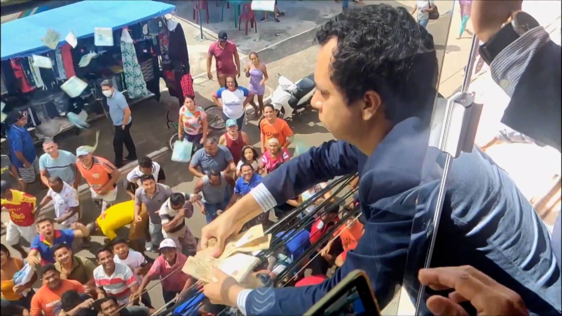 O valor seria de R$ 250 mil e, na rua, a atitude do vereador chamou a atenção da população, que se amontoou e disputou as várias notas que foram jogadas.