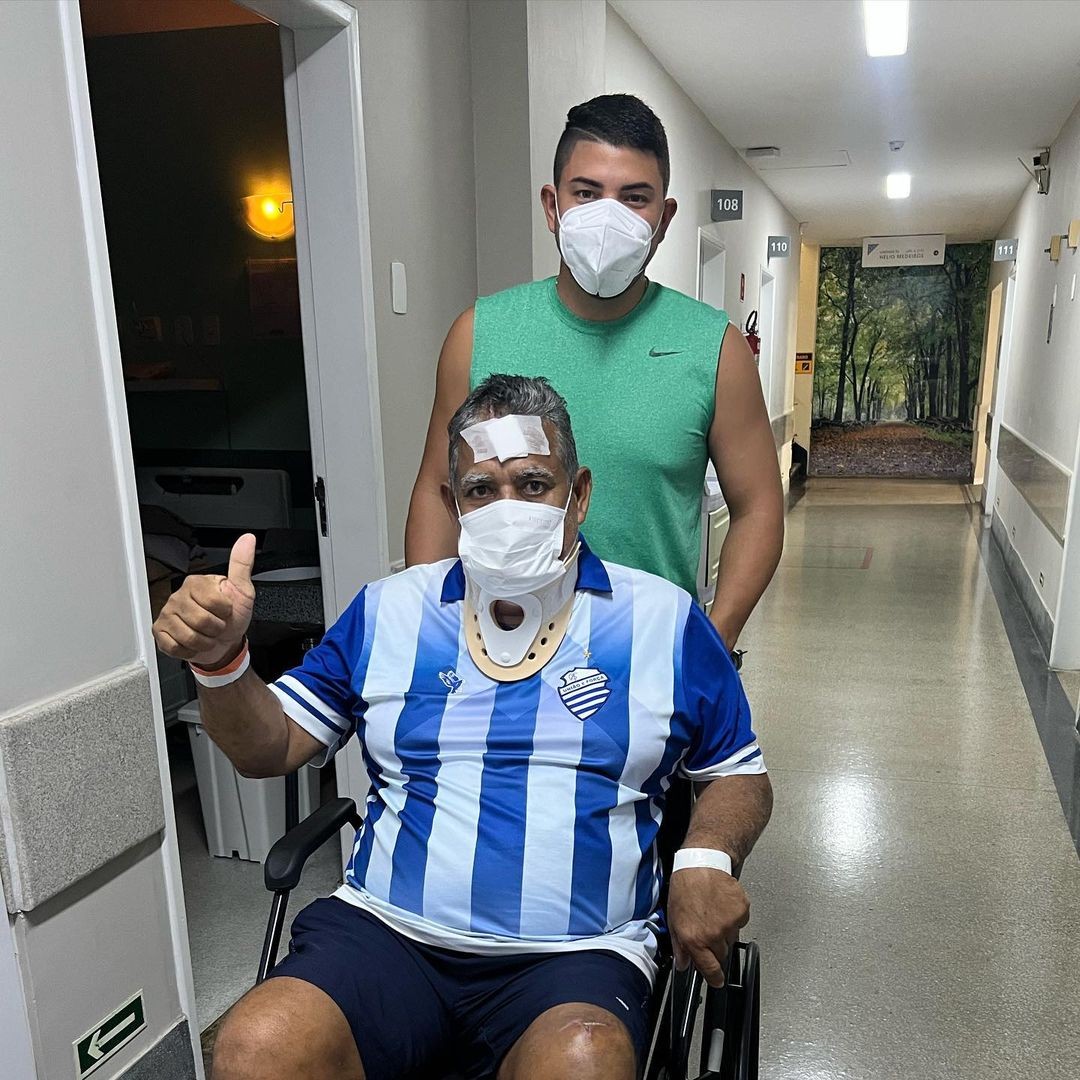 Vestido com a camisa do CSA, Joel se despediu do hospital em que esteve internado nas últimas semanas. O seu outro filho, que tem o mesmo nome do pai, postou no Instagram um agradecimento por todo apoio que a família recebeu desde o dia do acidente.