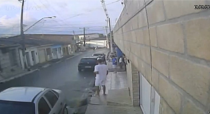 No outro crime, ocorrido em dezembro do ano passado, o mesmo homem aparece em uma moto, junto com um comparsa. Eles atiram contra uma outra vítima, que cai no chão já sem vida.